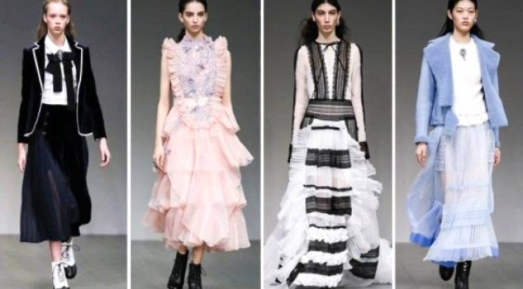 Londra merkezli Türk tasarımcı Bora Aksu'nun 2018 Sonbahar/Kış koleksiyonunda bol miktarda maskülen parçalar vardı. Defilede en sevdiğim nokta ise kat kat elbise ve etek trendinin her şekilde kombininin yapılması oldu.