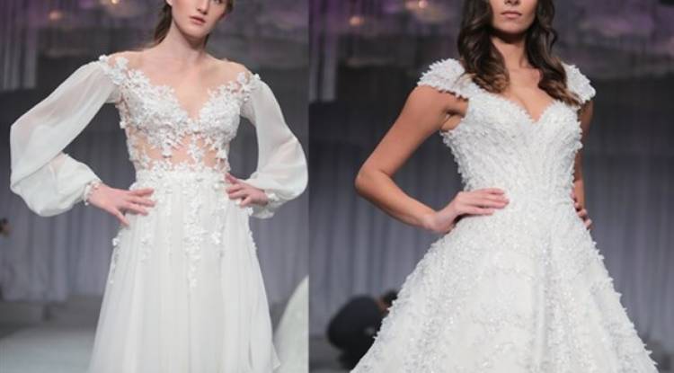 Abartısız şıklığın ön planda olduğu tasarımlarda, gelinlikler bolca detayla süslenmişti.
